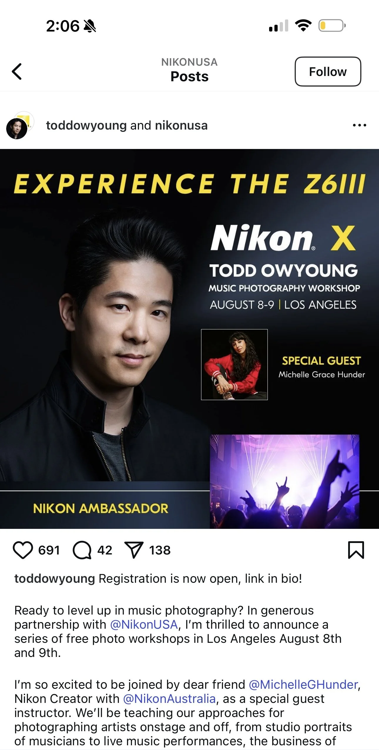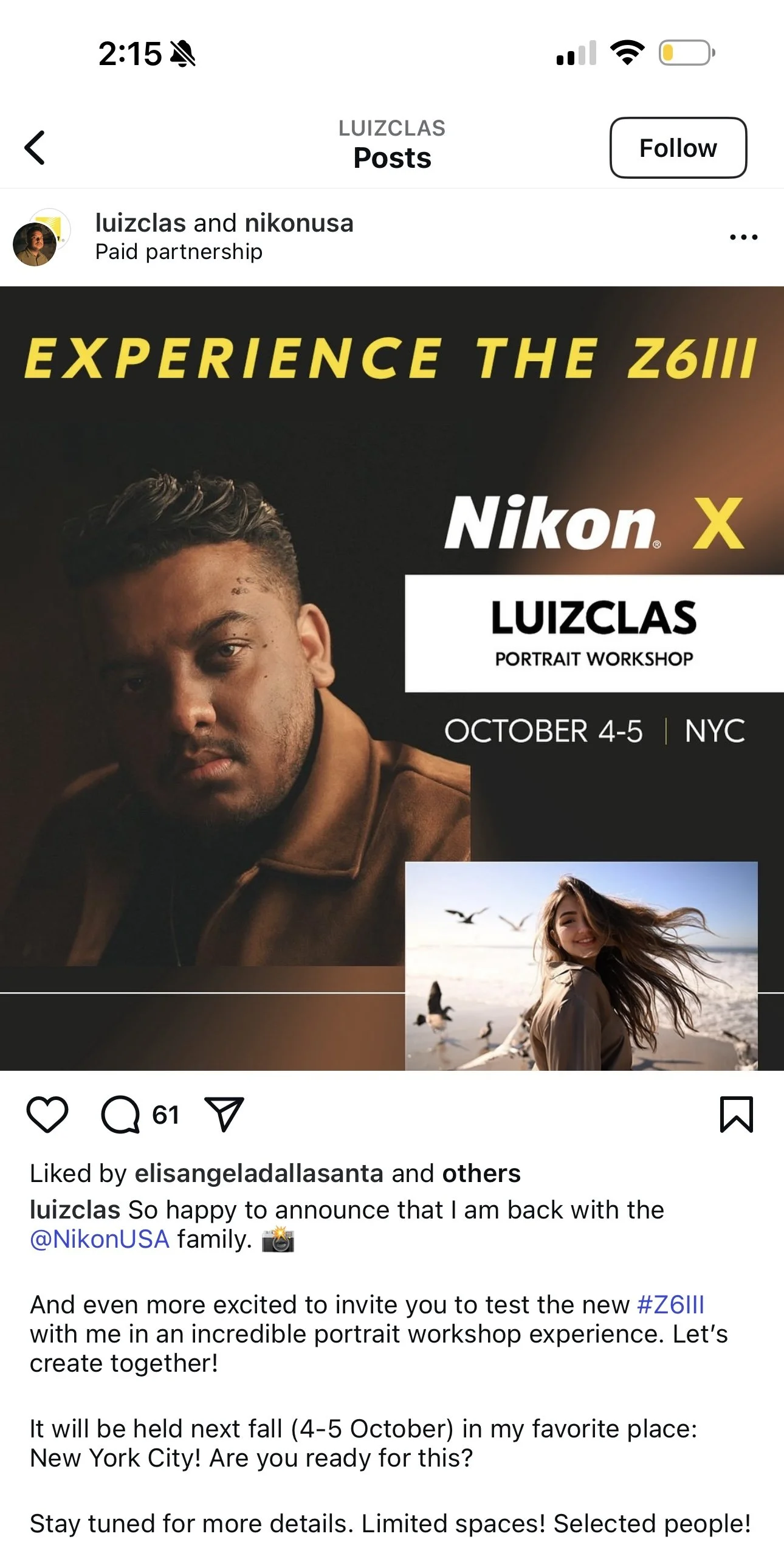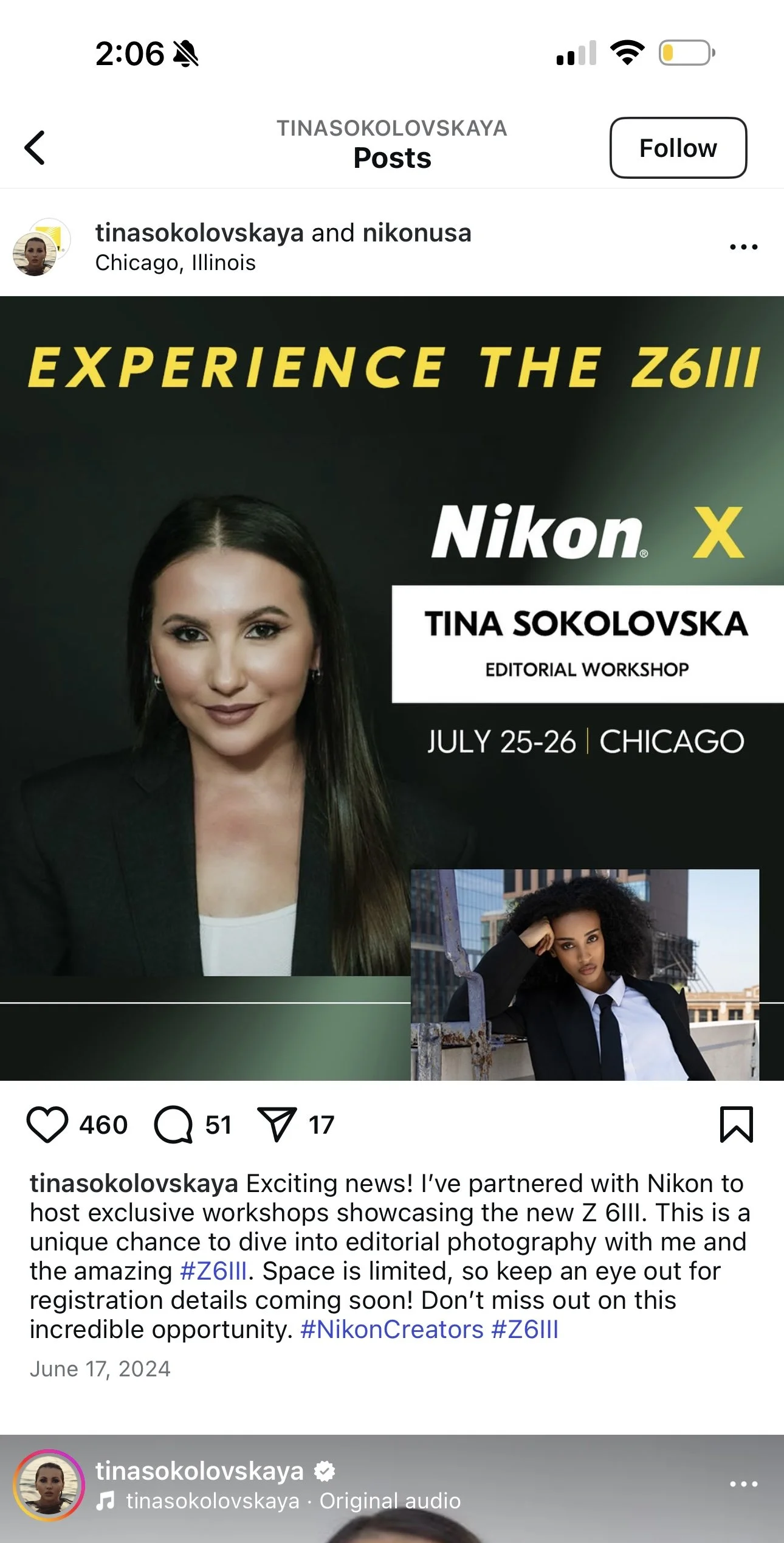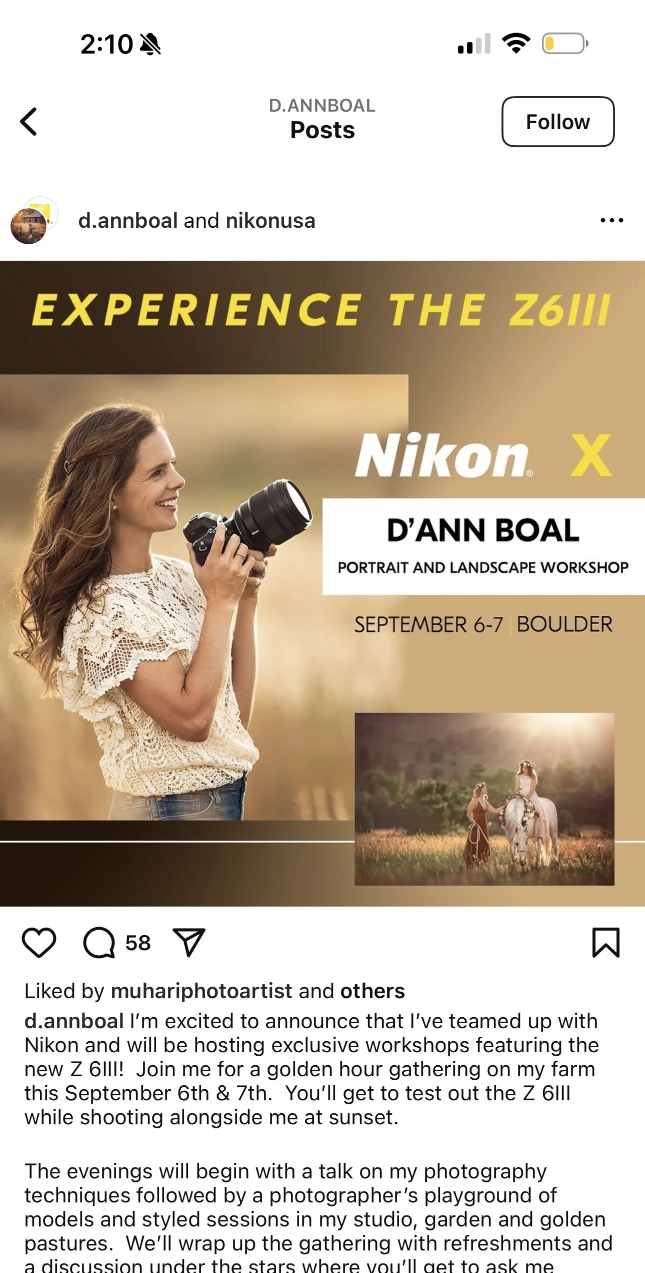 Series of social media posts created for photographer workshop to promote the z6II. graphics posted on both nikon’s instagram page as well as the photographers.